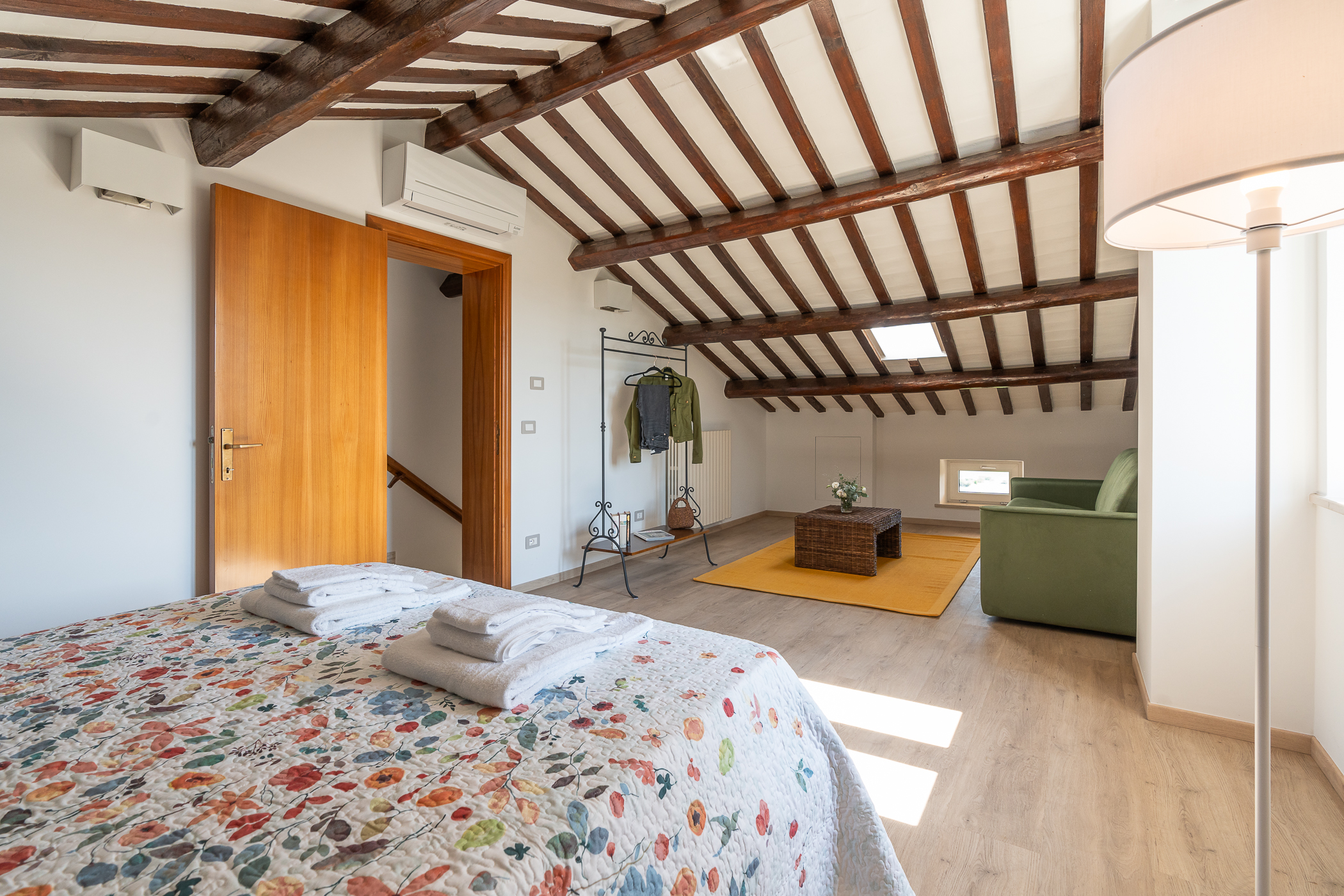 Il Casale ospita 5 camere matrimoniali, 2 divani letto (4 posti aggiuntivi) e 4 bagni, tra cui uno accessibile alle persone con disabilità, uno con vasca e due con doccia.