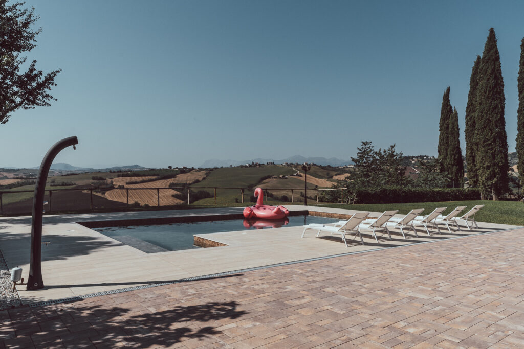Il cuore dell’estate al casale è la nostra piscina panoramica, un’oasi di relax immersa nella natura, con una vista spettacolare che si apre sul paesaggio circostante.